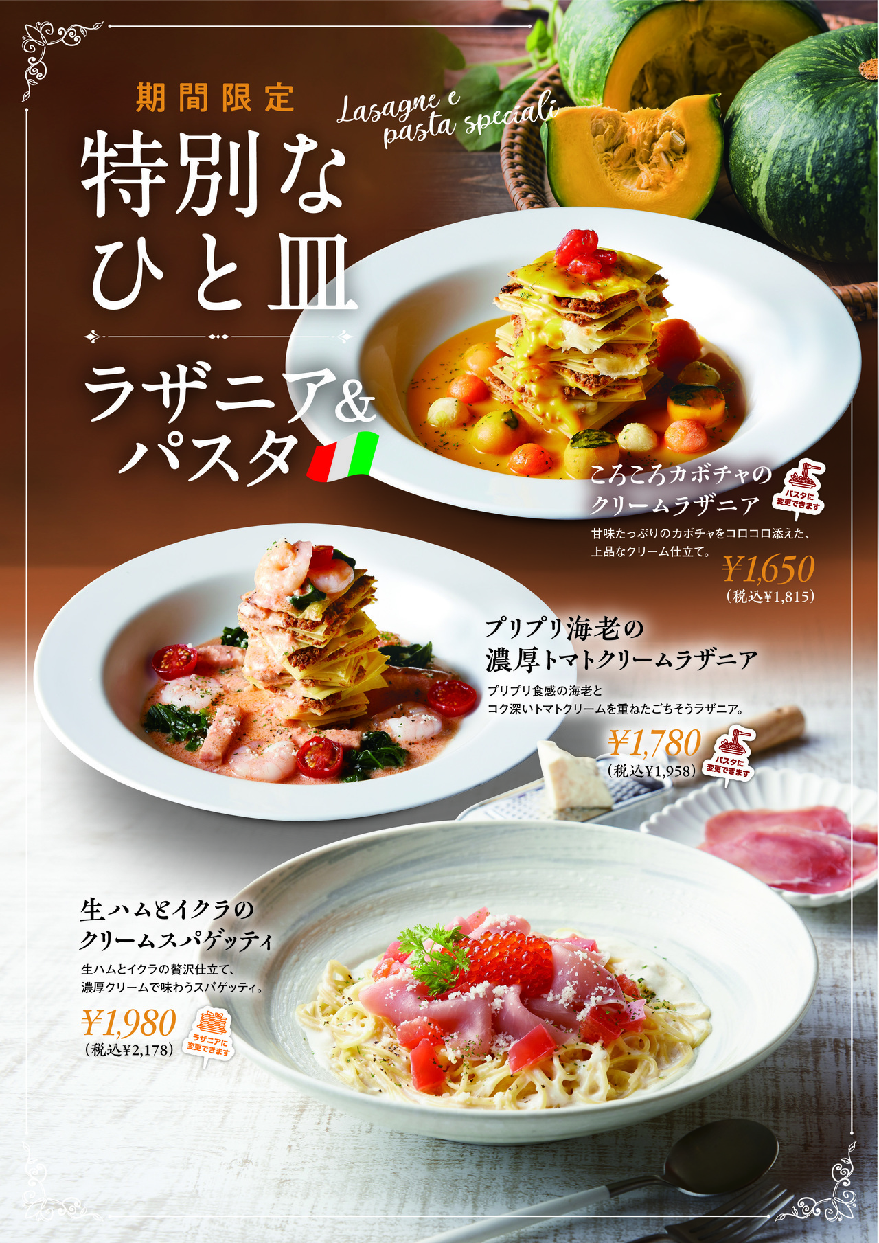 生ラザニアをはじめ、パスタやドリア高級食パンのグラタントースト