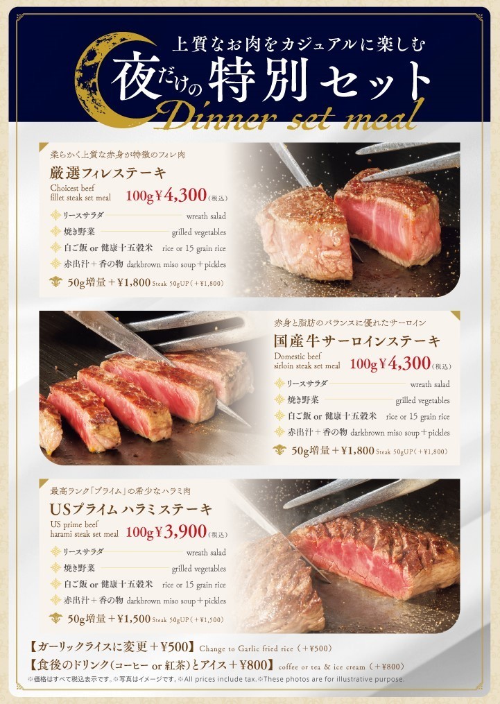 産地直送の新鮮素材や、特製の調味料など素材にもこだわり、特注の鉄板を使用し音、香り、舞い上がる炎までもご堪能いただけるオープンキッチンです。一様に、「鉄板焼き」と聞くと、高級なイメージがありますがより多くの皆様にその醍醐味を味わっていただけるよう「カジュアル」「アットホーム」「リーズナブル」というスタイルで心から楽しんでいただける大人の空間とこだわりの逸品を存分にご堪能いただけます。