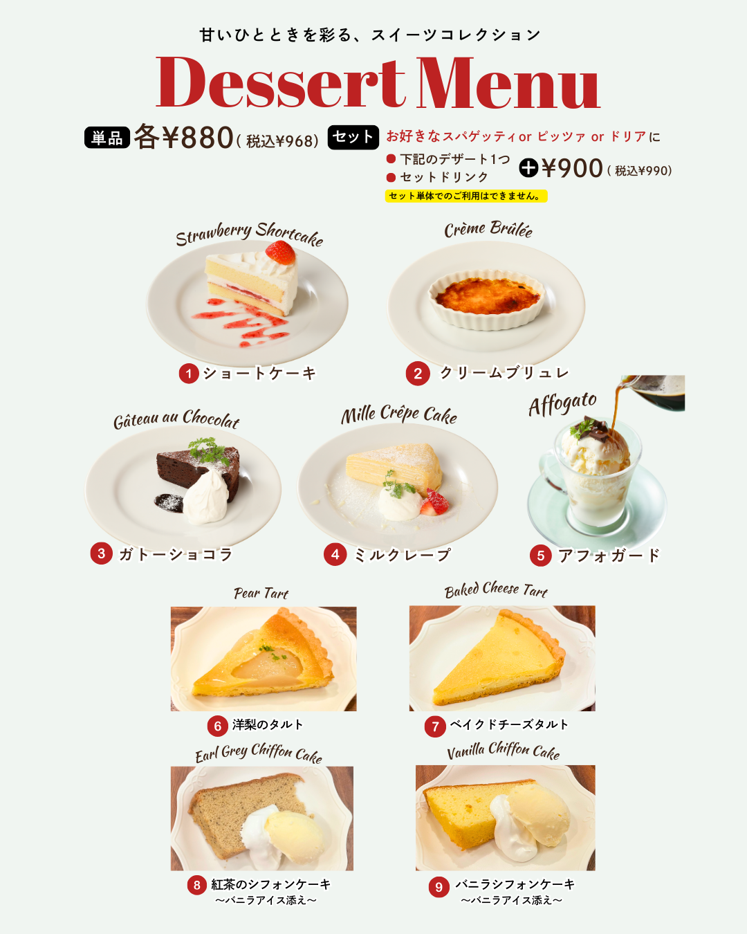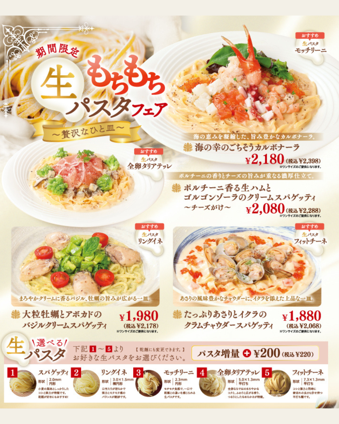 『ナポリタンからピザ、ドリア、デザートまで!多彩なパスタ30種類も楽しめる』