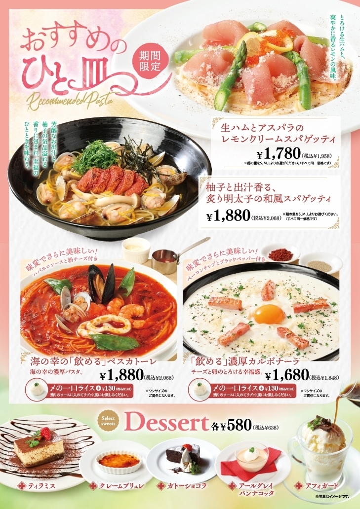 9種類のカルボナーラを始め、スパゲッティは充実の23種類をラインナップ!